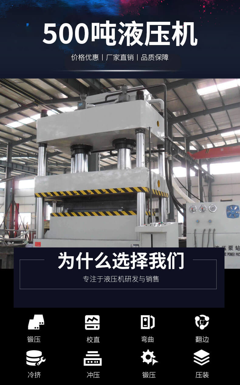 500噸液壓機是一種以液體為工作介質,用來傳遞能量以實現各種工藝的機器。液壓機除用于鍛壓成形外,也可用于矯正、壓裝、打包、壓塊和壓板等。液壓機包括水壓機和油壓機。以水基液體為工作介質的稱為水壓機,以油為工作介質的稱為油壓機。液壓機的規格一般用公稱工作力(千牛)或公稱噸位(噸)表示。鍛造用液壓機多是水壓機,噸位較高。為減小設備尺寸,大型鍛造水壓機常用較高壓強(35兆帕左右),有時也采用 100兆帕以上的超高壓。其他用途的液壓機一般采用 6~25兆帕的工作壓強。油壓機的噸位比水壓機低。