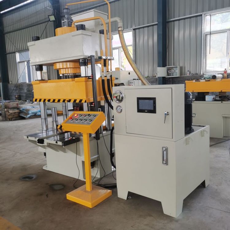 液壓機油壓機由主機及控制機構兩大部分組成。油壓機主機部分包括機身、主缸、頂出缸及充液裝置等。動力機構由油箱、高壓泵、低壓控制系統、電動機及各種壓力閥和方向閥等組成。動