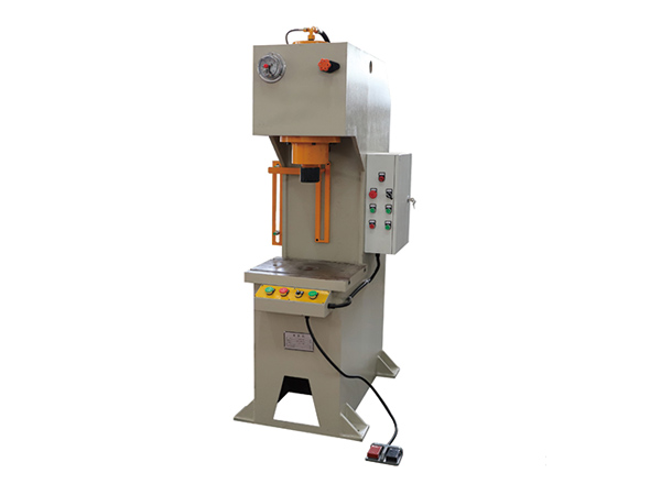 40T單臂液壓機又稱C型開式結構液壓機,單柱結構液壓機的很大優點是操作方便,可三面接近工件,裝卸機件簡單方便,特別是軸類零件校直和板材彎曲成型等工藝應用,這一結構形式十分方便。